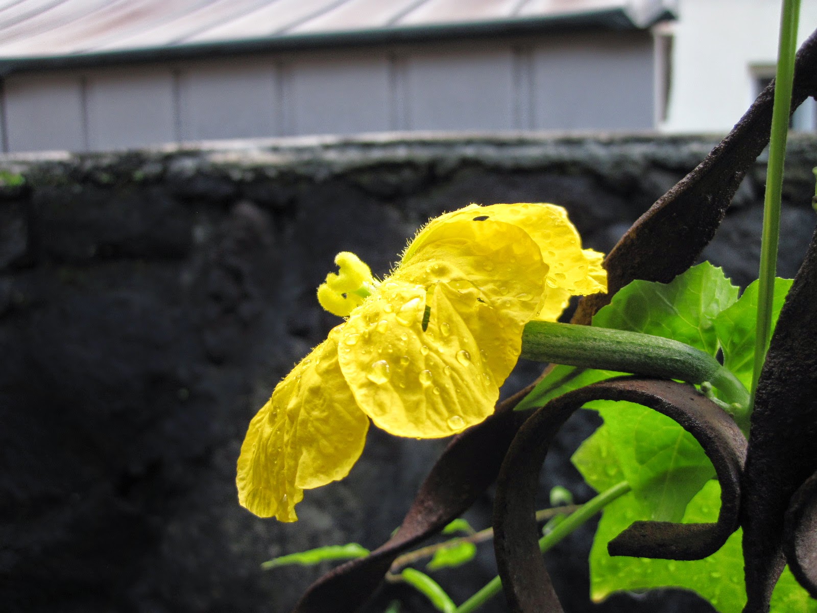 A few months ago, I found some loofah seeds at a local plant exchange and decided it would be fun to grow my own bath scrubbies. I've been looking at these flowers trying to figure out which were males and which were females and not really sure how I was going to tell...until I looked at this one today. It's a female!