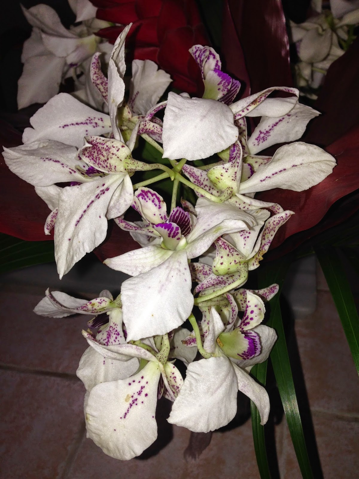 My trusty, unidentified pink/lavender orchid is blooming on the back porch.