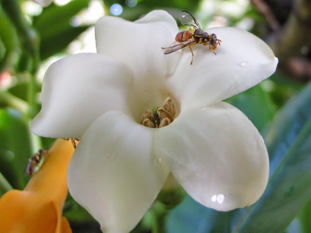 There's NOT always night-blooming jasmine blooming, and even when there is, the flowers themselves get very little love. They're usually closed up by the time I get around to taking pictures, but they're actually quite sweet, even without their perfume.